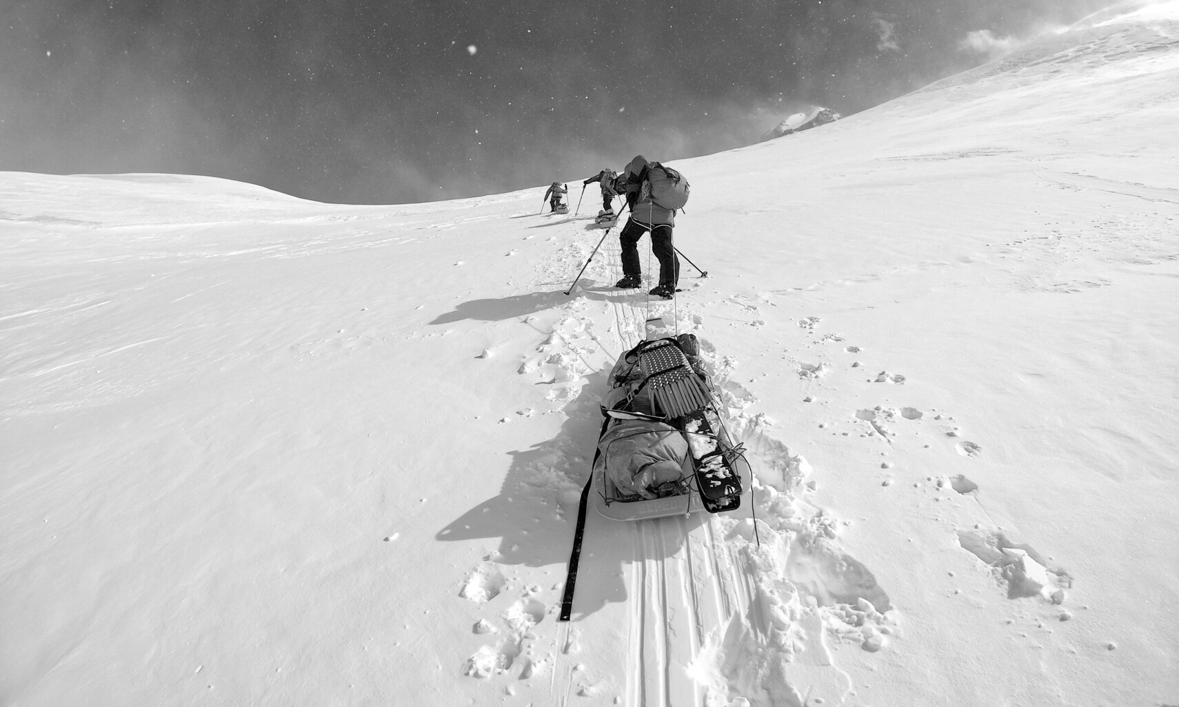 Die Idee für die Durchquerung des Denali-Massivs kam von Alex, seines Zeichens Bergführer aus Chamonix. Er überzeugte Hélias, der gerade von einer Ski-Expedition mit Aurel aus Kirgisistan zurückgekehrt war, wo die beiden bereits über ein mögliches Projekt in Alaska gesprochen hatten. Christophe vervollständigte das Quartett. Mit seiner Erfahrung als Skifahrer, aber auch als Paraglider, Wingsuitflyer und Segler hatte das Team endlich alle benötigten Fähigkeiten für ihre Expedition zusammen. Doch noch wichtiger war ihnen ihre gemeinsame Vision: durch das Abenteuer zu einer tiefen menschlichen Verbindung zu finden.