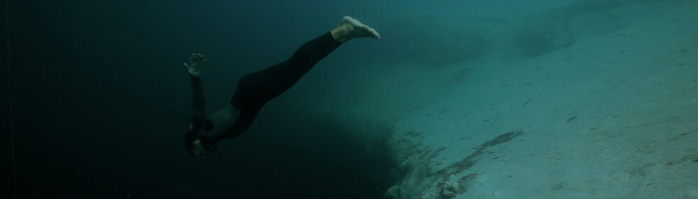It is a mystical and seemingly bottomless place and simply perfect for Guillaume Néry’s Free Fall into the still, blue world. He takes a deep breath and jumps in. Normally, it is a place where apnea-diving competitions are being held. But this time, Guillaume is not doing a regular dive, he is much rather performing a "B.A.S.E. Jump" into this hole in the seabed which is 202 metres deep - a perfect symbiosis between free diving and B.A.S.E. Jumping.