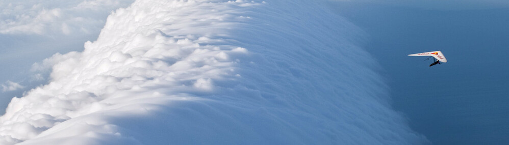 Most of the time, the cloud keeps everyone waiting - as if it knew that people will exercise patience because of it. Meteorologists have still not completely decoded its secret and cloud lovers from all over the world, fascinated by its imposing appearance, travel to Burketown on the coast of Queensland (Australia) every year at the end of September in order to take pictures and to surf with gliders. So far, nobody has tried to do this with a hang-glider.