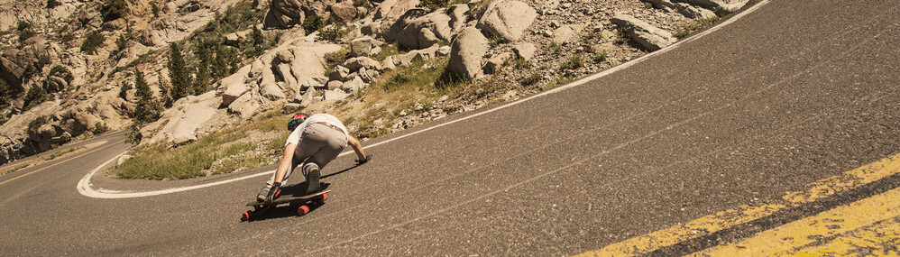 The winding roads of the western Sierra Nevada are seemingly endless. They are perfect for James Kelly, and there is no stopping the young longboarder when he’s descending into the valley. Kelly rips down the asphalt at 70 km/h, blasting through curves without brakes.
